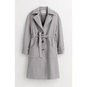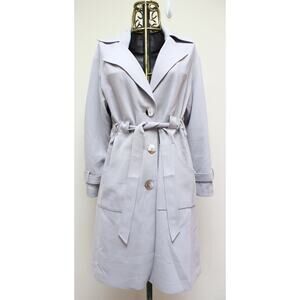 Petite Studio New York NY Darcy Stone Gray Belted Trench Coat Jacket Size XS