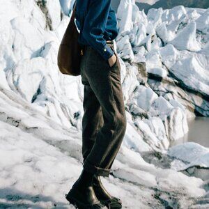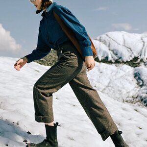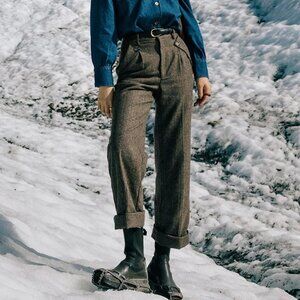 Description: A collaborative capsule collection with influencer @suggyl - The Reign pants are tailored from a wool blend and feature a high-waisted silhouette and straight-leg style in a rich brown-grey hue. It comes with functional side and back pockets and is fully lined for comfort. Wear them in full length or fold them up for a versatile look.