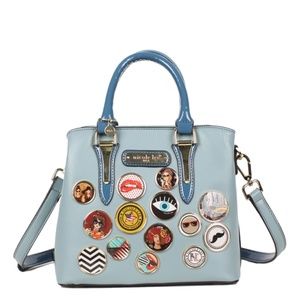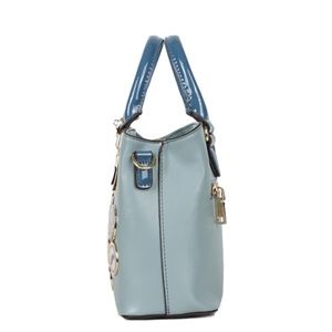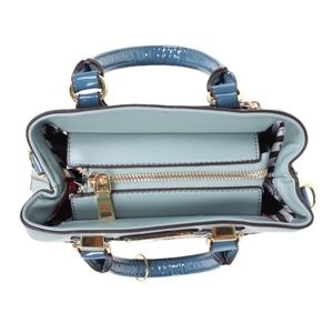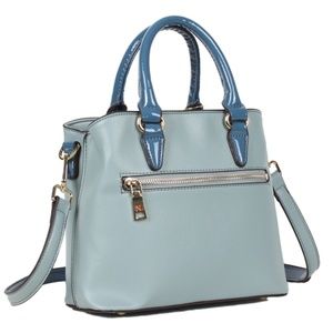Vegan leather handles with 5" inch drop.