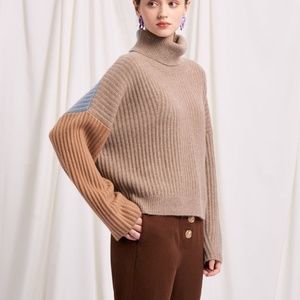 Cozy up in the Averie Sweater. This petite sweater is made of premium wool and cashmere that we custom blended to get the perfect, soft wool touch. The Averie has an oversized look, with a neck that can either be rolled down or worn stretched out. Can be worn on reverse for a different outfit combination. Style yours with a slim-fit bottom and boots for a cold wintery day!