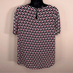 Petite XL Simply Styled Geometric Print Blouse Short Sleeve Red Black White