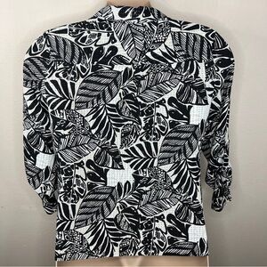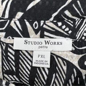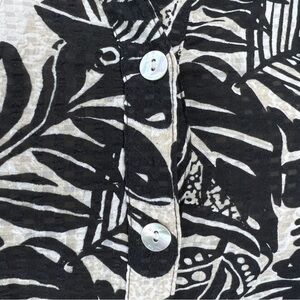 Petite XL Studio Works Black Beige Leaf Print Button Front Top Lightweight