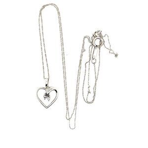 Real 10K White Gold Necklace with 2 Small Real Diamond Heart Pendant, NOT GOLD PLATED OR GOLD FILLED.