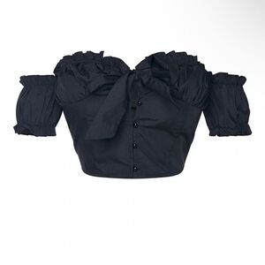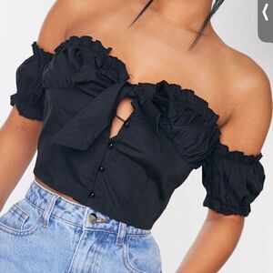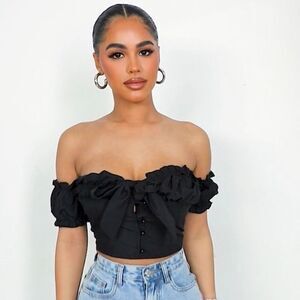 Petite Black Frill Detail Crop Blouse PLT size 6