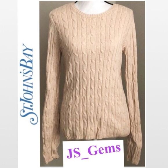 St. John’s Bay Petite large tan cable knit warm top. Features crew neck, thin cable knit, & soft stretchy fabric. Approx. arm pit to arm pit 19”, arm 22”, & body 20”T. Ask any questions before purchasing. Enjoy buying from an Ambassador II. Same or Next Day Shipping 🎁 Make an Offer or bundle to Save 😊💕 All sales final & sold as is