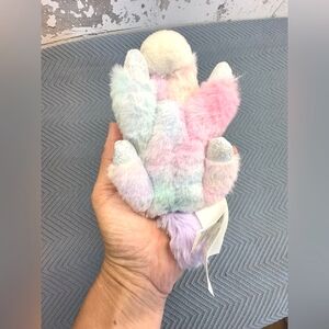 adorable plush fantasy unicorn stuffed animal childrens toy in soft pastel colors. Perfect for small pets to cuddle and play with. Features a gentle pink and cream design.