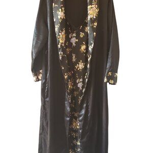 Petra Fashions Black Satin Robe And Nightgown Matching Set Vintage Med Lrg