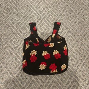 Petra Fashions Black Tank Top with Red and Cream Floral Design