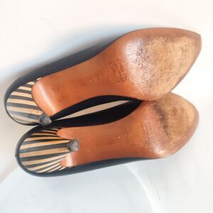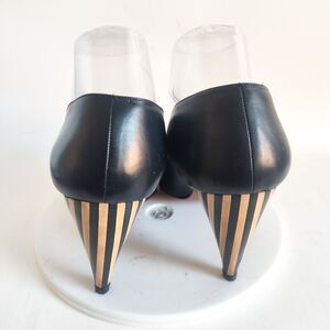 Petra Firenze Heels 9.5 Italian Leather Sole Pumps Navy Blue Pointy Toe Striped