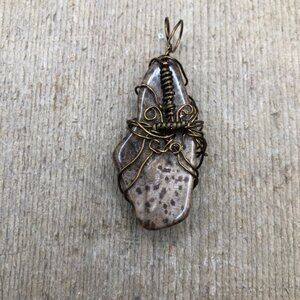 Petrified Palm Wood found, cut and polished by my family. Bronze colored wire wrapped. Pendant only.