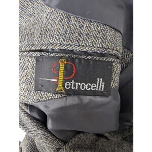 This Petrocelli men's blazer is crafted from a luxurious 90% wool and 10% cashmere blend, offering warmth with a soft hand-feel. Made in a textured gray herringbone pattern, it features a classic two-button front, notched lapels, flap pockets, and a full lining for structure and comfort. Sized 52R, this jacket leans into a timeless, vintage-inspired menswear aesthetic with preppy and professional appeal. Perfect for fall layering, business settings, or dressed-up casual looks.