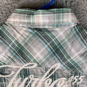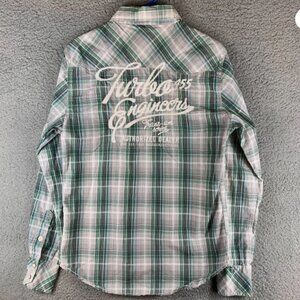 Petrol Industries Green Gray Plaid Button Up Shirt Turbo Engineers Back Medium