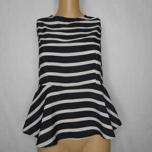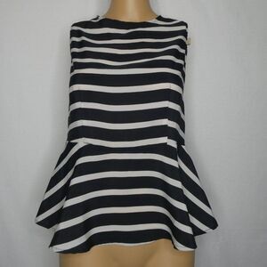 Petticoat Alley Bow Open Back Peplum Striped Top Blouse Sleeveless Medium