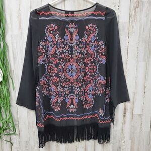 Petticoat Alley Fringed Kimono Cardigan Black Size XS