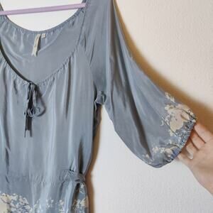 Petticoat Alley Silk Gray Abstract Floral Off Shoulder A-line Mini Dress Small