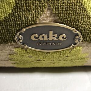 Petunia Pickle Bottom Cake Diaper Bag Green Velvet Tapestry. Includes washable changing pad. Smoke-free and pet-free environment. Please see photos for measurements. Sorry no long strap is available. Good condition. Some inner lining spotting. Makes a great overnight bag as well.