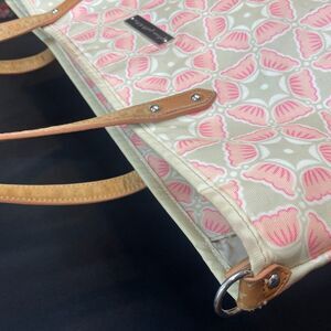 Orig $139. Beautiful Petunia Pickle Bottom large diaper bag / tote in the pink, tan & cream "Blooming Brixham" modern, hip, geometric floral pattern. Zips closed at top. Double shoulder straps. Has clips to add your own longer shoulder strap / crossbody strap if desired (not included.) Stain-resistant material for easy clean up! Designed to keep all of your baby's necessities organized: numerous sections, inner pockets and dividers, and outer zippered side pocket. Metal feet on bottom protect fabrix from scuffs/dirt. A great city bag; also perfect for beach, cabana club and pool days, vacation, trips, even without the kids!