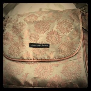 Beautiful Petunia Pickle Bottom diaper bag with back pack straps. These are the best diaper bags around!! Plush changing pad included. In excellent condition with minor wear on the back, see photo. Inside looks brand new. Priced low because of the wear on the back.