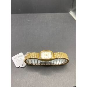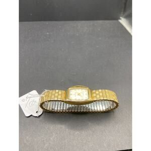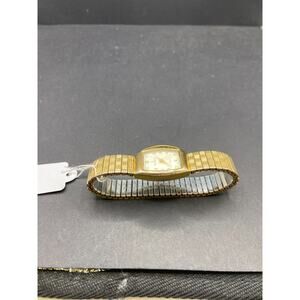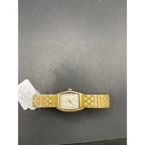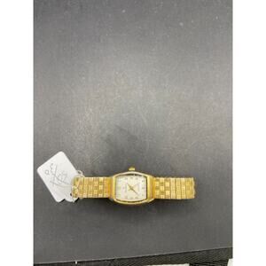 Peugeot 418 Gold Tone Quartz Analog Watch Stainless Steel Stretch Band Size 6"