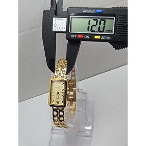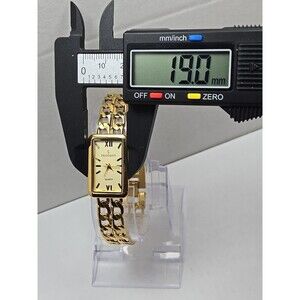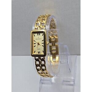 Peugeot 7081 Womens Gold Tone Tank Quartz Watch New Battery Curb Link Bracelet