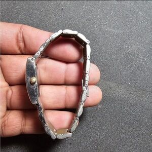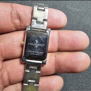 Peugeot 758 Ladies Quartz Watch Tank Style Silver Gold Tone Roman Dial Working shows signs of wear such as light scrarches on case band and crystal see pictures for reference
