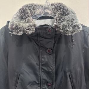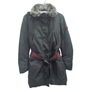 Peuterey Vintage Charcoal Goose Down Belted Parka Winter Coat Faux Fur Apres Ski