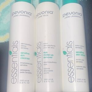 Pevonia Essentials offers a gentle cleanser for sensitive skin. White bottle with green accents. Refreshes and soothes. Smells amazing and gentle on the skin. Please google full ingredients if need be. Great way to try new products. The cleanser is very gentle and non stripping. The toner is refreshing. And the eye makeup remover works great. Try them now! Feel free to customize a bundle by commenting.
