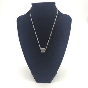 Pewter 16 in necklace with several words on rotating heavy barrel shaped charm.