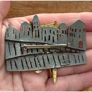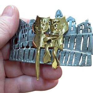 Pewter Cats on the Fence brooch pin silver- & gold-tone metals novelty jewelry