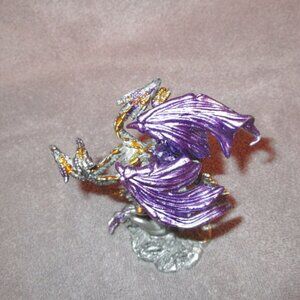 Pewter Dragon Iridescent 2 Headed Serpent Heart Crystal Winged Fantasy Figurine