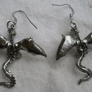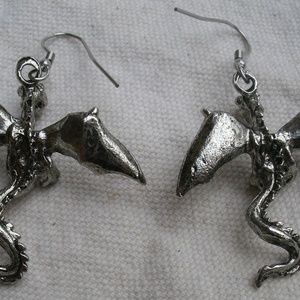 tags: earrings, jewwelry, pewter, earwires, pierced, dragon, fantasy, creature, mythical, mythic, sets, dangle, gothic, womens