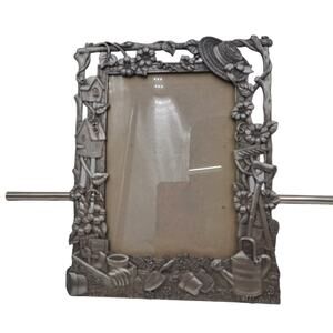 Pewter Garden Signed Copyright Sun Gardening Country Cottagecore Photo Frame. Preowned EUC, see all the pictures as part of the description.