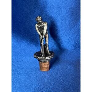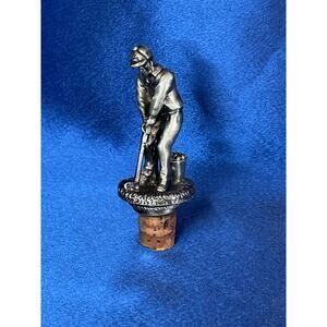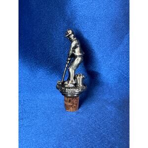 Pewter golfer with bucket of golf balls cork bottle stopper