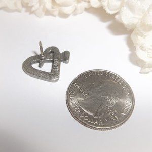 Pewter Heart Pin Brooch Square Head Nail Jewelry Unisex Edgy Modern Unique A322