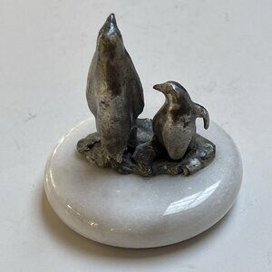 Pewter Penguin Figurine on Marble Base Pair Mama Chic Paperweight Decor