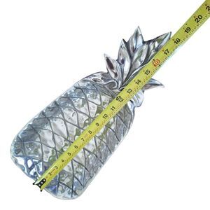 Approx. 18 x 8 pineapple shaped hammered polished pewter serving platter tray, 2.25" deep