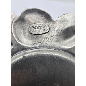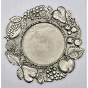 Pewter Plate Candle Holder Grape Fruits Leaves 6.5"vintage Made In Italy