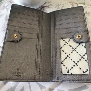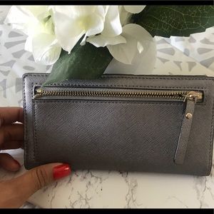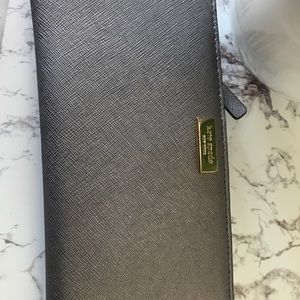 Never used Pewter Kate Spade wallet. Can hold up to 13 Credit Cards. Beautiful color with infamous gold details, great Condition !