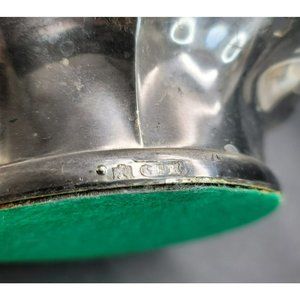 The exterior appears to be pewter, but the marks appear to be a crown and CPM. There is a grape vine motif on the edge.