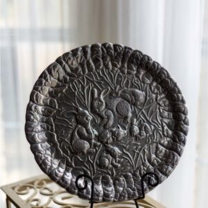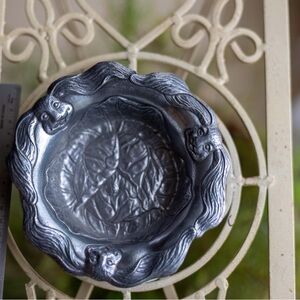 Beautiful curated collection of 13 vintage pewter plates, trays, bowls, and glass sold as a complete set. Perfect for spring hosting, Easter gatherings, and seasonal tablescapes.