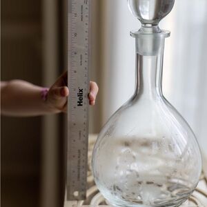• Vintage glass bottle featuring a bull rider design and peacock feathers