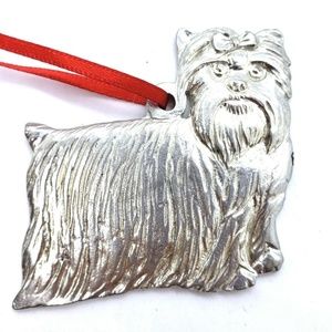 Vintage Hand Cast Pewter Yorkie Ornament.