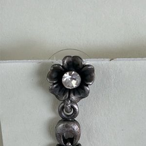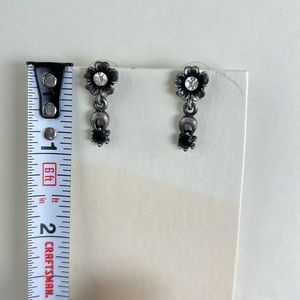 Pewter and Clear and Black Rhinestone Drop Earrings