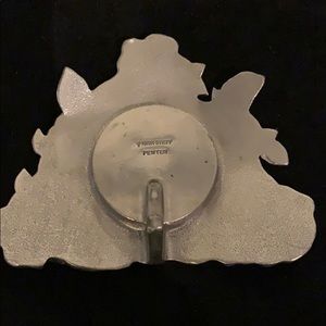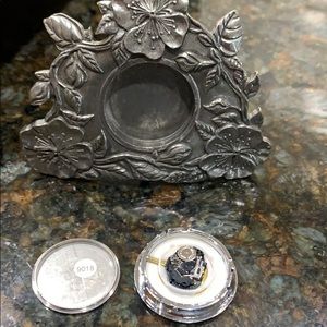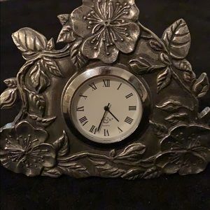 Collectible vintage Lenox Kirk Stieff pewter clock. Lovely floral motif. Measures 4” x 3 1/2”. No returns. Uses watch battery.