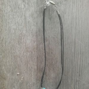 Pewter color charm 1 1/4" with turquoise color beads on a double black cord. 16" NWOT