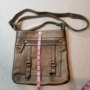 Pewter color faux leather crossbody bag