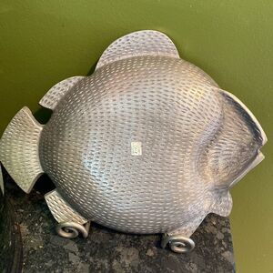 Very cool Pewter fish. Comes with decorative stand that can be mounted on the wall. Made in India. Platter measures 13” x 10 1/2”