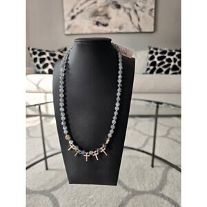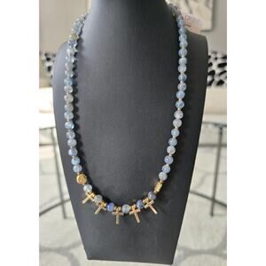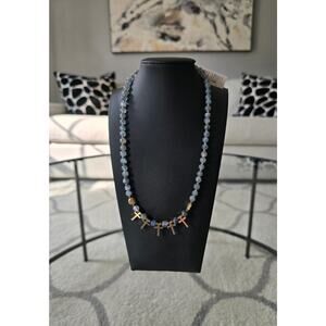 Brand new with tags, Peyote Bird Free Spirit Blue Natural Stone Cross Necklace New. Beautiful Blue Stones, toggle closure, with Gold Cross charm detail