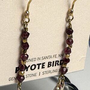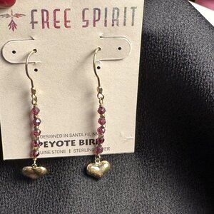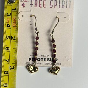 Peyote Bird Garnet Beaded Heart Drop Dangle Earrings Sterling Silver Artzy Boho
