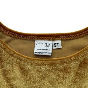 This beautiful Peyper Kids dress is perfect for your little one! It features a gorgeous gold / dark mustard colored velvet fabric, adding a touch of elegance to any occasion. The 3/4 sleeves make it comfortable for playtime or special events. In excellent condition and ready for a new home. Made in the USA.